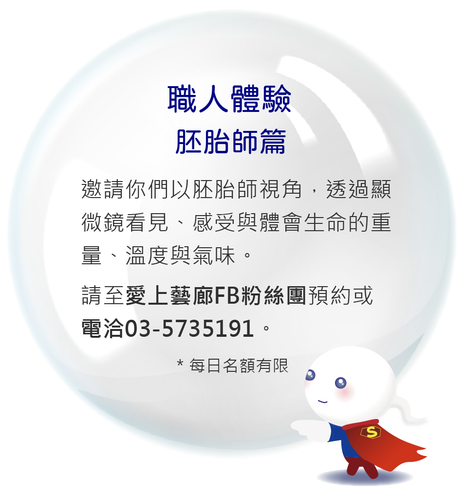 孩子是父母前世情人的化身,每一個胚胎分裂發育看似自然規律,漂亮的卵子、型態與活動力佳的精蟲、好胚胎的養成,接著安排植入,順利懷孕帶個健康寶寶回家…這一切過程看似順理成章,但實際卻沒表面上這麼容易,一個家庭的圓滿,背後其實充滿著各種「看不見」的堅持與努力。