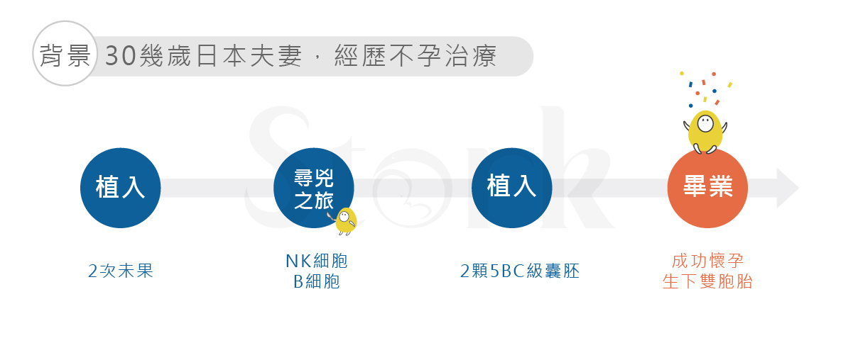 2.在試管嬰兒治療中,經歷了三次移植,透過找出凶手(B細胞與NK細胞),並實施對症治療(IVIG與血栓針),進一步加入冒險的策略(使用高劑量的血栓針劑),最終成功戰勝了這些困難。