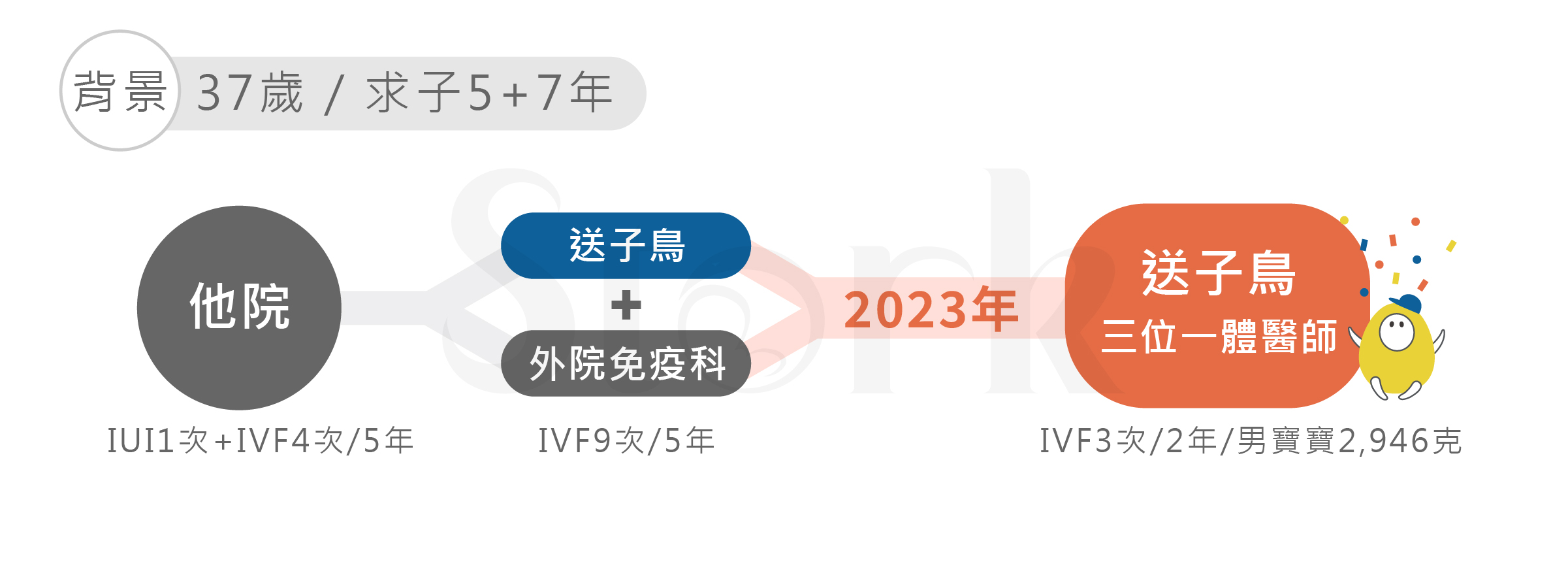 差點忘了交代「神力女超人」由來,在送子鳥「重複植入失敗或反覆流產8次以上」才畢業者就是,我們每年畢業生近1,000人,符合此條件者僅 1-2 人,且都發生在「兩站式生殖免疫」轉「三位一體」之過渡期,2023年以後之新客不再有「神力女超人」。